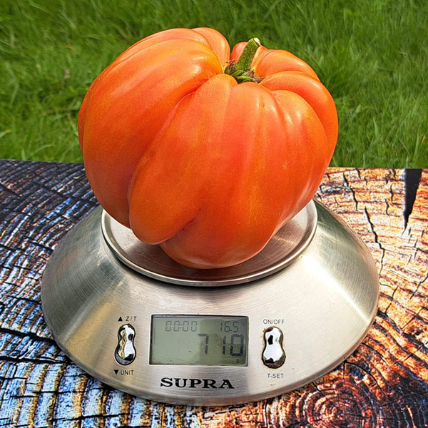 В 2024 году у меня вырос плод Козьего мешка весом 1,5 кг (на фото). Правда при этом он «забрал» на себя практически все силы куста, и пока я его не сняла, другие плоды не набирали вес и цвет.