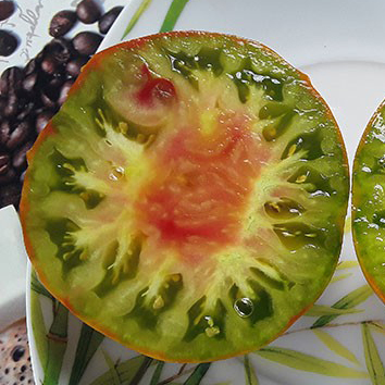 Цвет мякоти: разноцветная, с преобладанием малиновых и зеленых оттенков